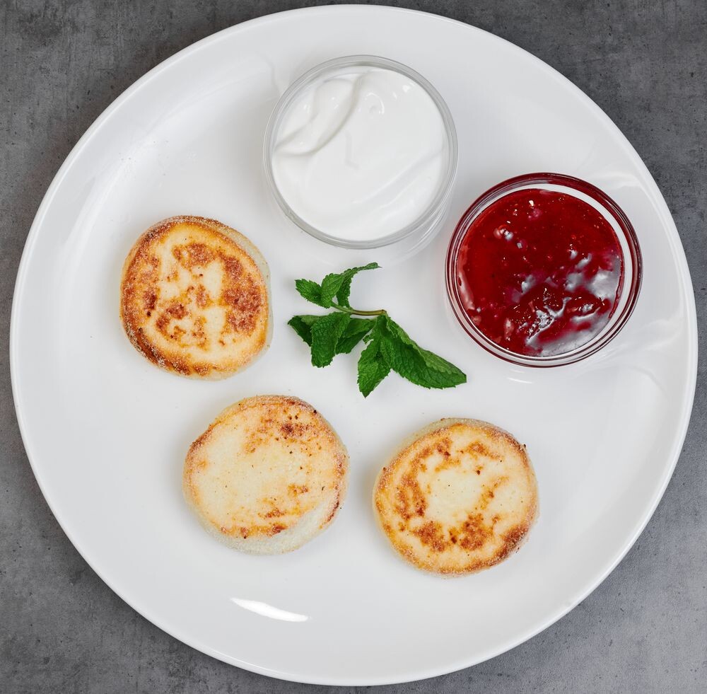 Завтрак «Сырники с джемом и сметаной»